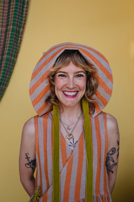 Tapuh x Cat O'Brien Sun Bonnet - Satsuma Stripe