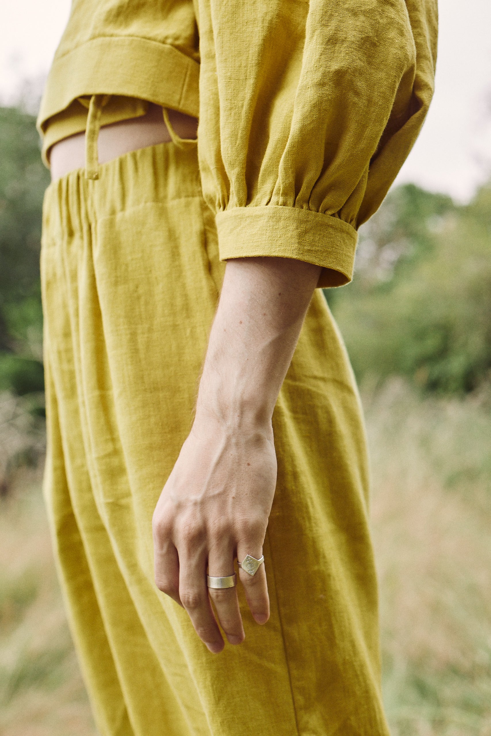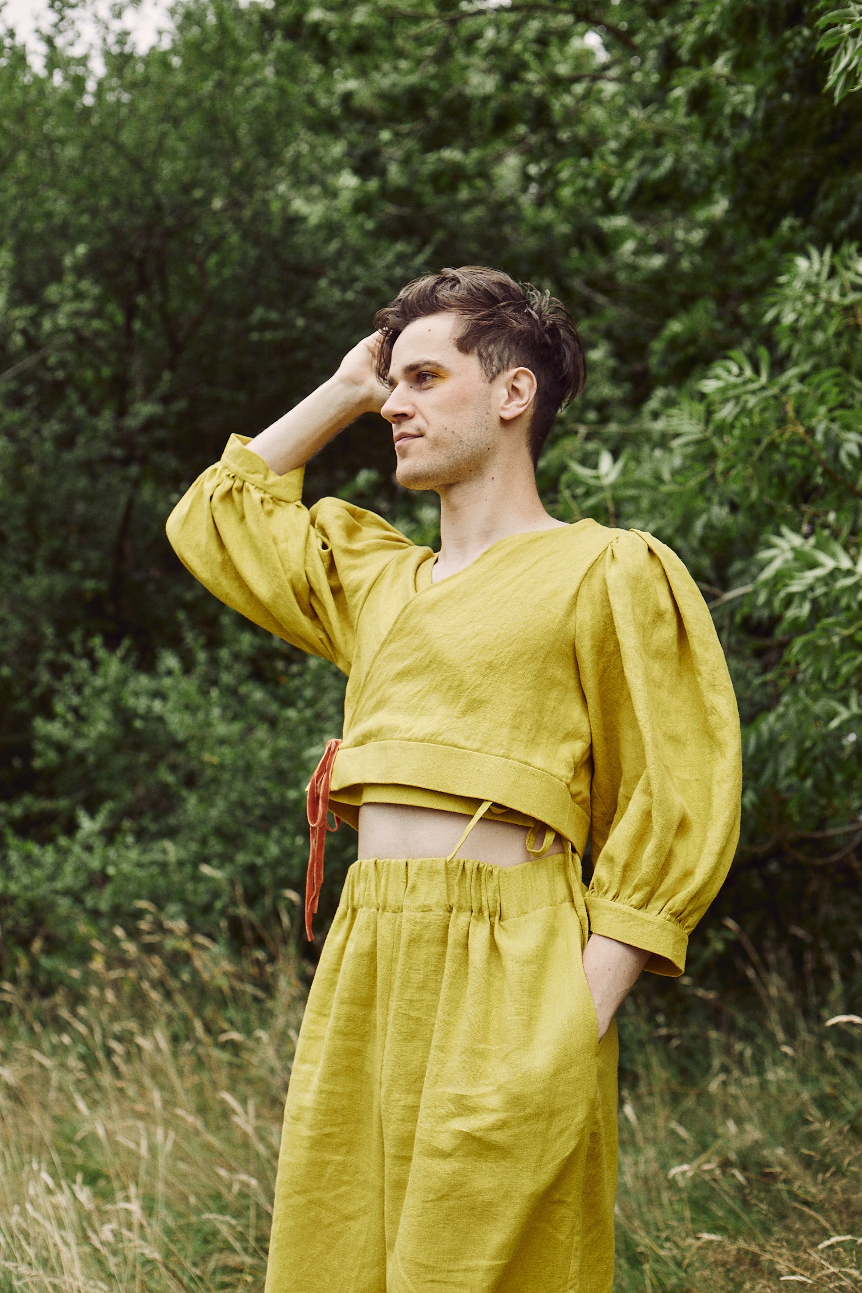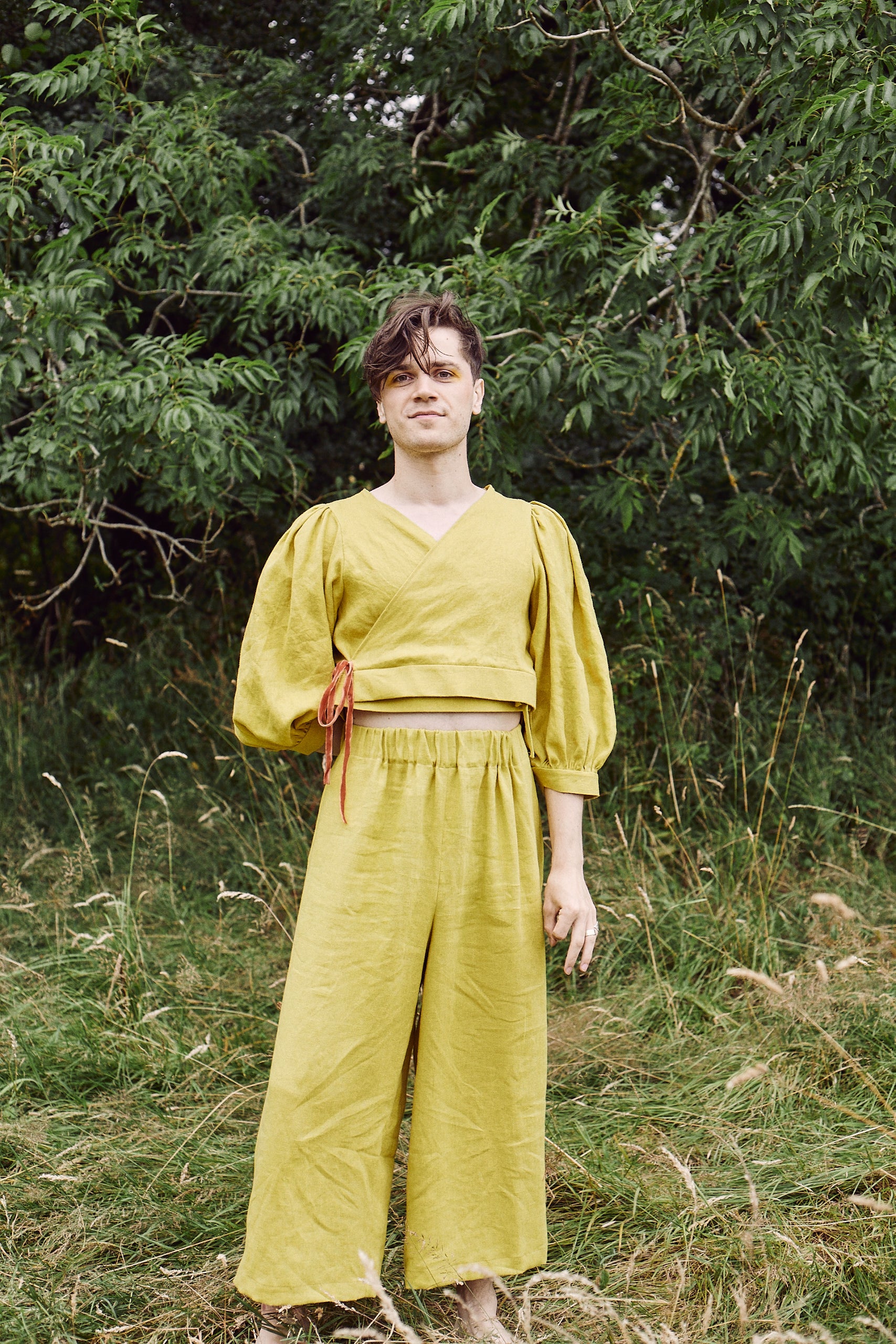 Made from a 185gsm European linen this citric dream is the perfect transitional piece through seasons. It is a standout yet harmonious colour that would fit into anyone’s wardrobe. Our Chartreuse colourway closes with a contrasting soft apricot double sided velvet ribbon.