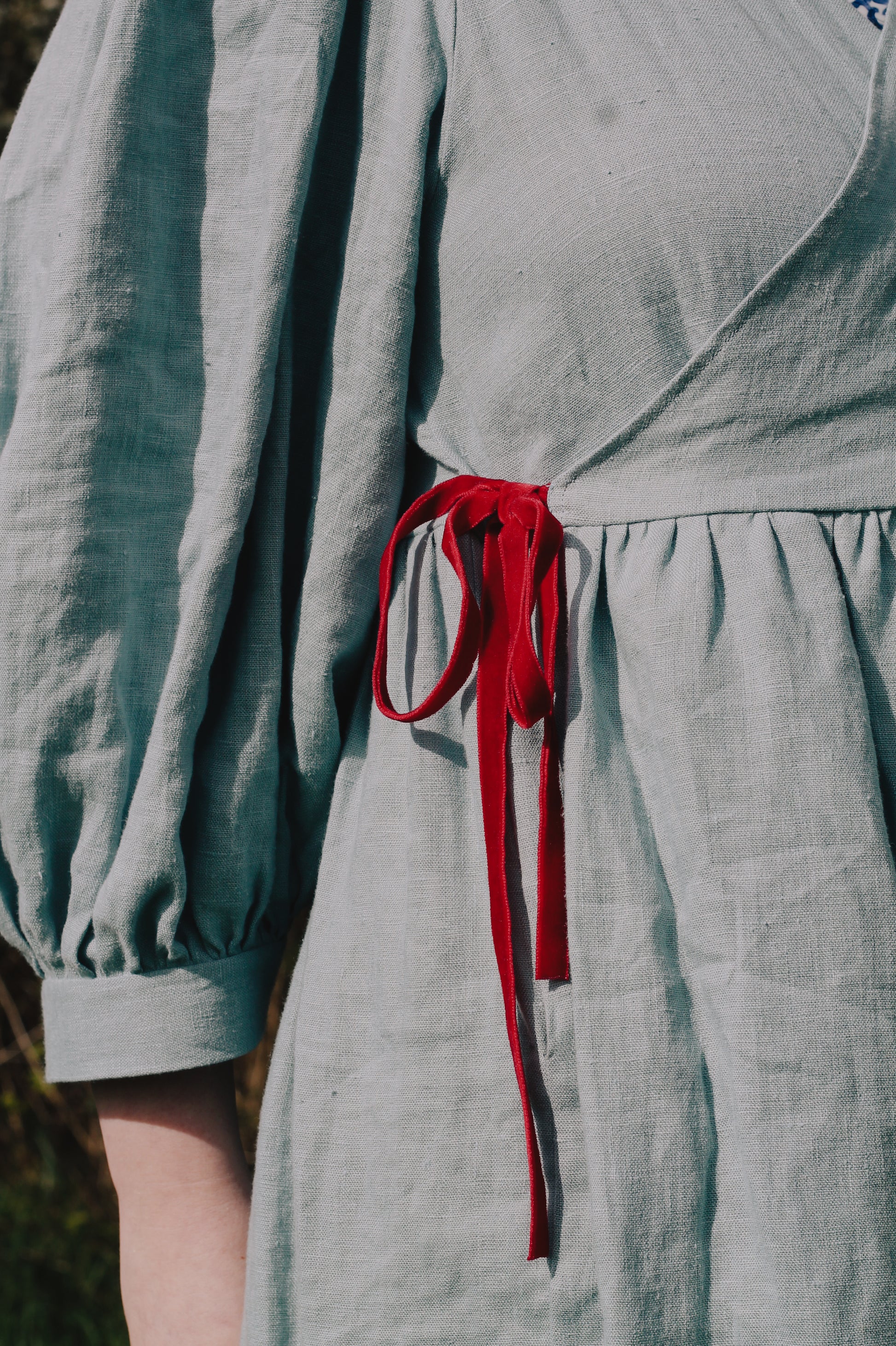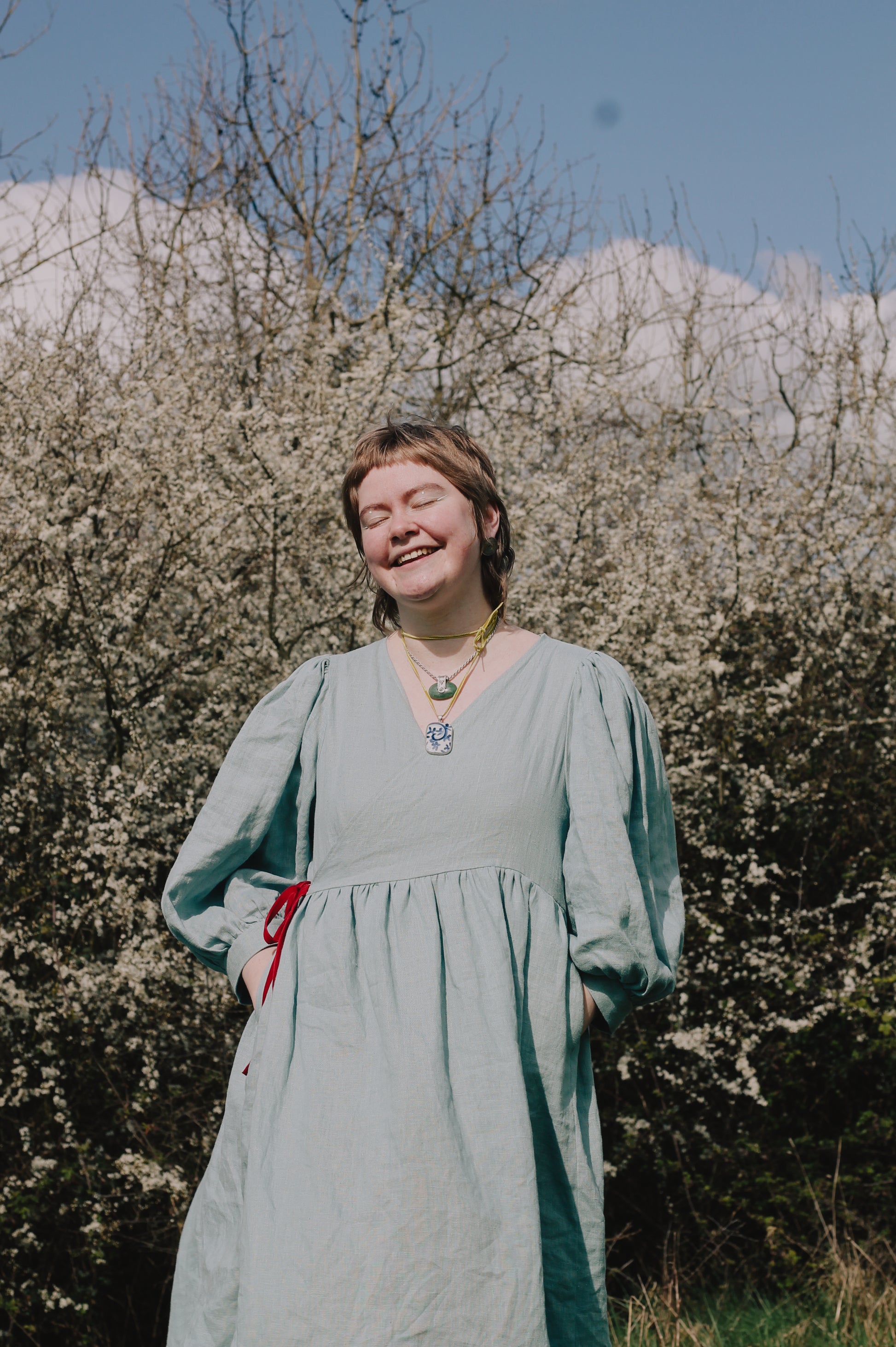 Made from a 185gsm European linen this soft colourway is a staple for the summer. Named Joni after our sweet Joni Mitchell, this piece will bring light and love to any outfit. Soft, strong, sturdy and bouncy this regal Cloud 9 will make any outfit feel special. Our Joni colourway closes with a contrasting ruby red double velvet ribbon.