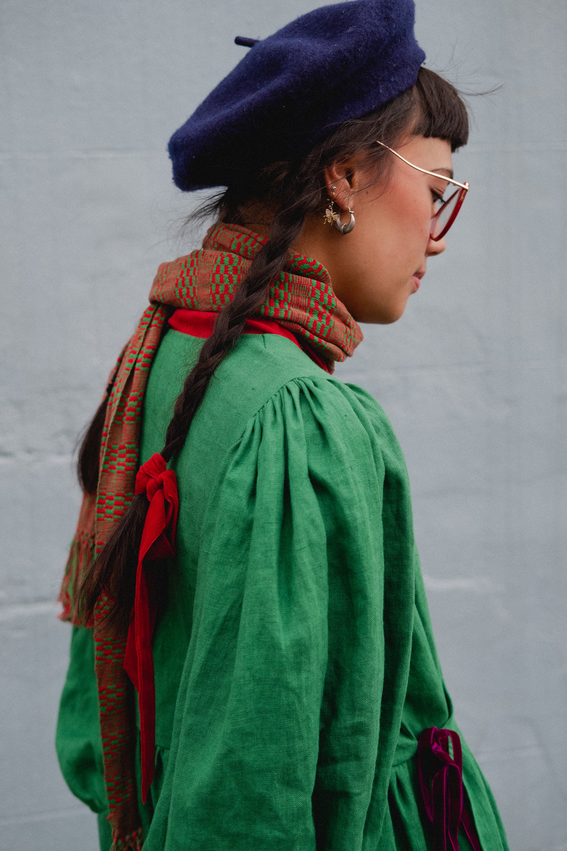 Our Paloma Smock Top has been designed as a front button-up, with a tapered silhouette, gathered back and full length sleeves. The Paloma is true to size, however due to the gathering in the back it has a breezy feel to it. Size up to wear more as a jacket and for extra room for layers!