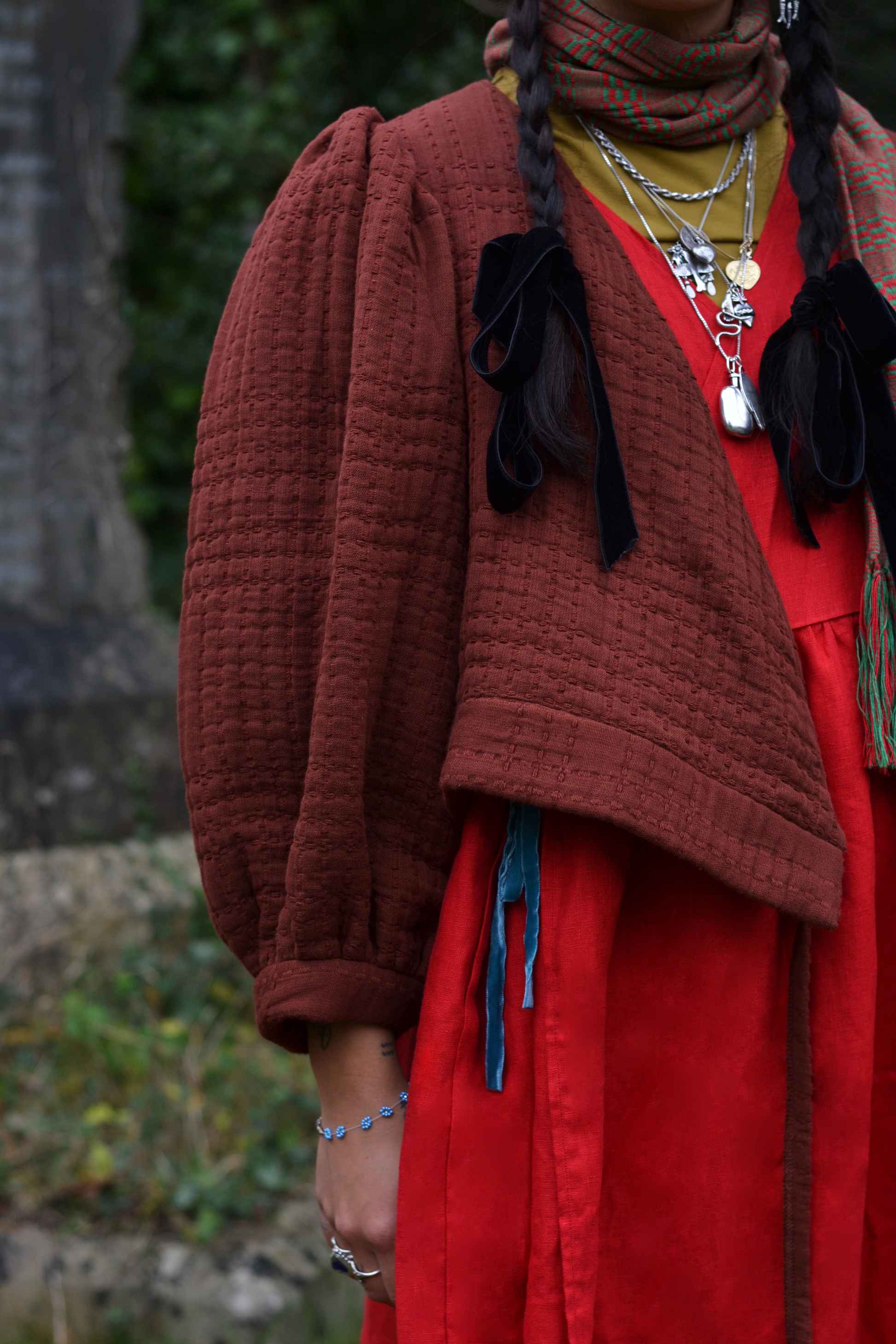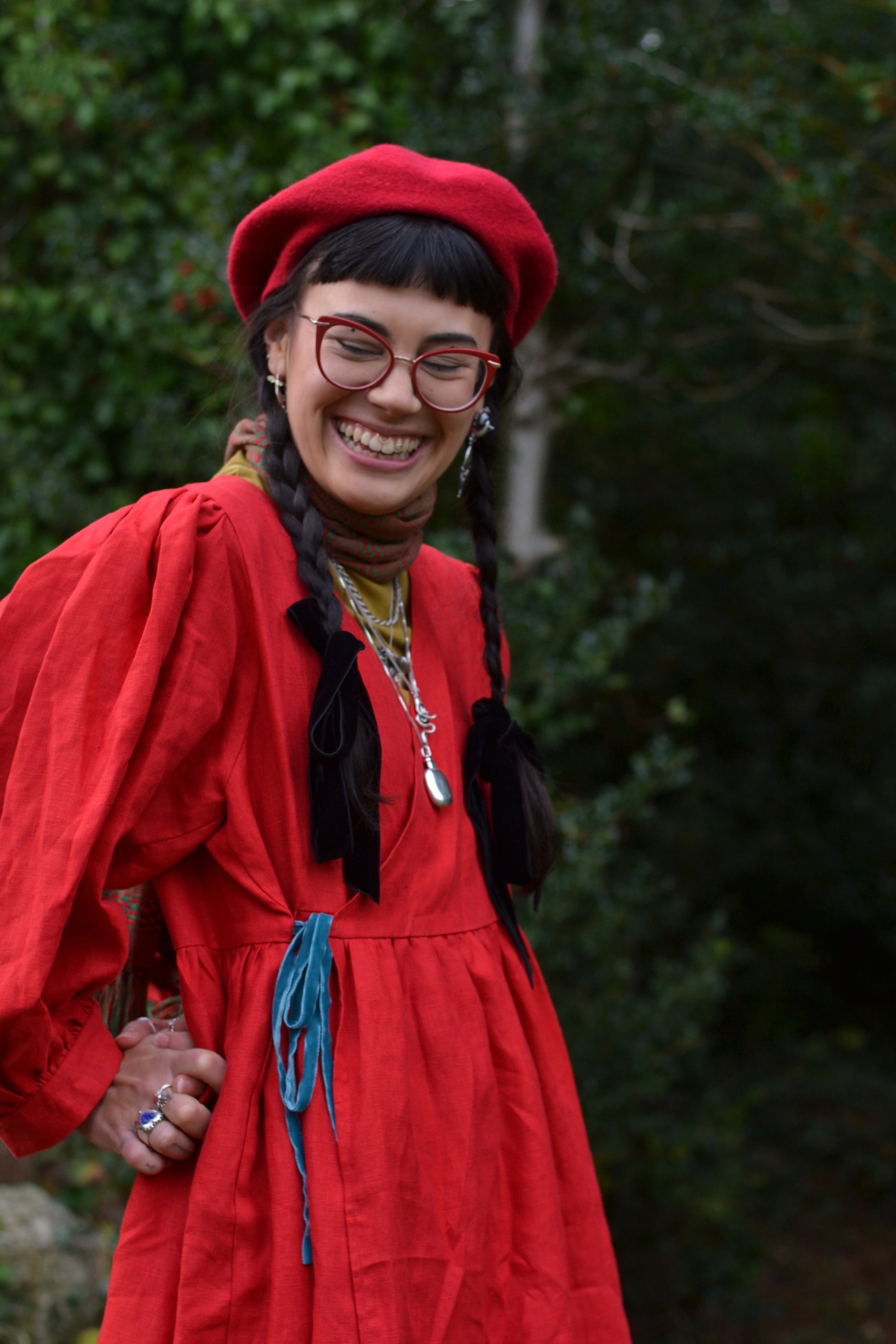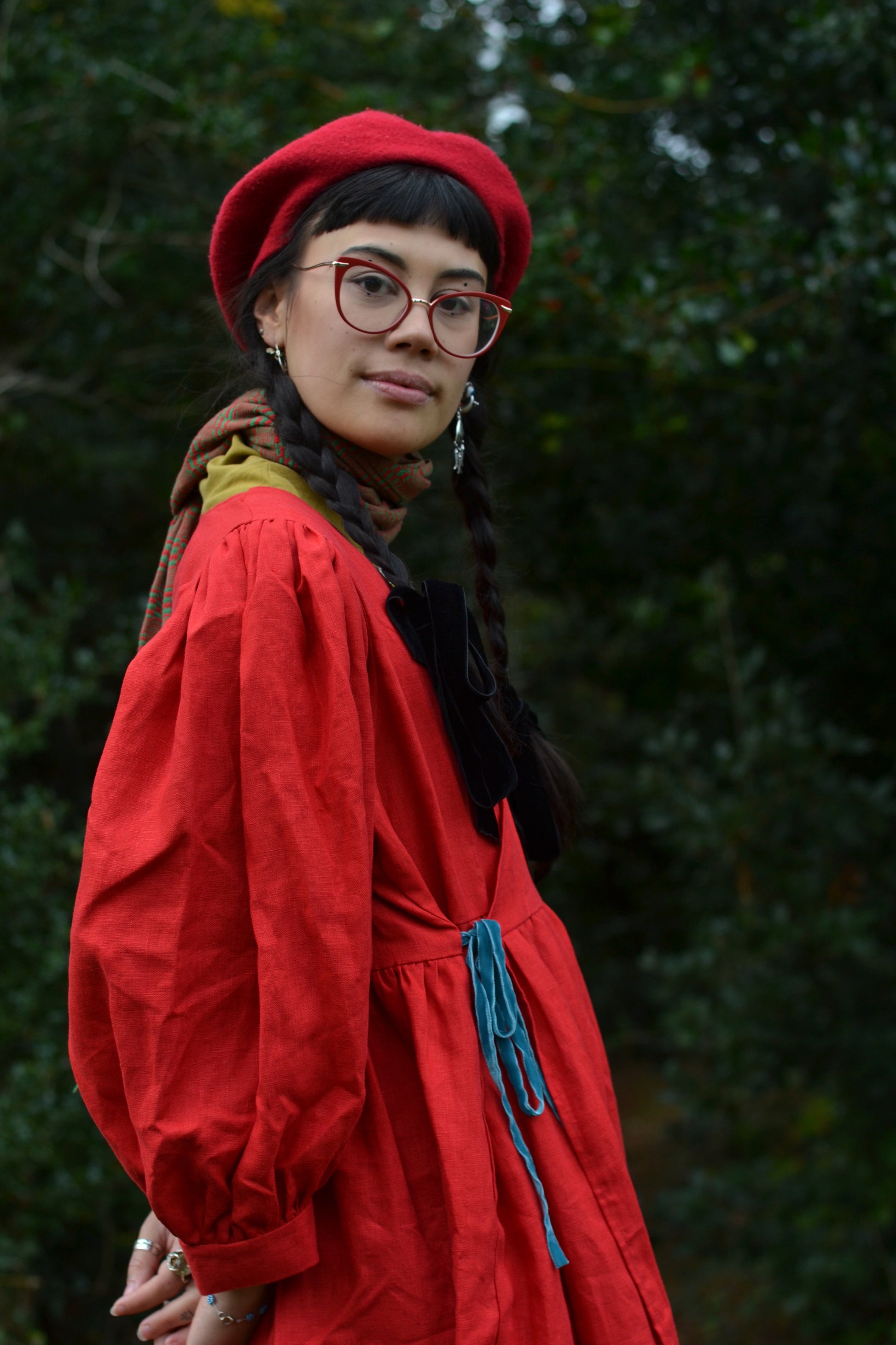 Super spicy and always cosy this incredible bright scarlet red Cloud 9 is the pop of colour every wardrobe needs - from one look you instantly feel energised! Made from 100% European linen this Cloud 9 has a lovely soft and breathable quality. This Cloud 9 top has a beautiful teal double-sided velvet tie which contrasts the red linen beautifully. Due to the handmade nature of this fabric please don’t worry about occasional irregularities within the weave, but we just think that adds to the charm.