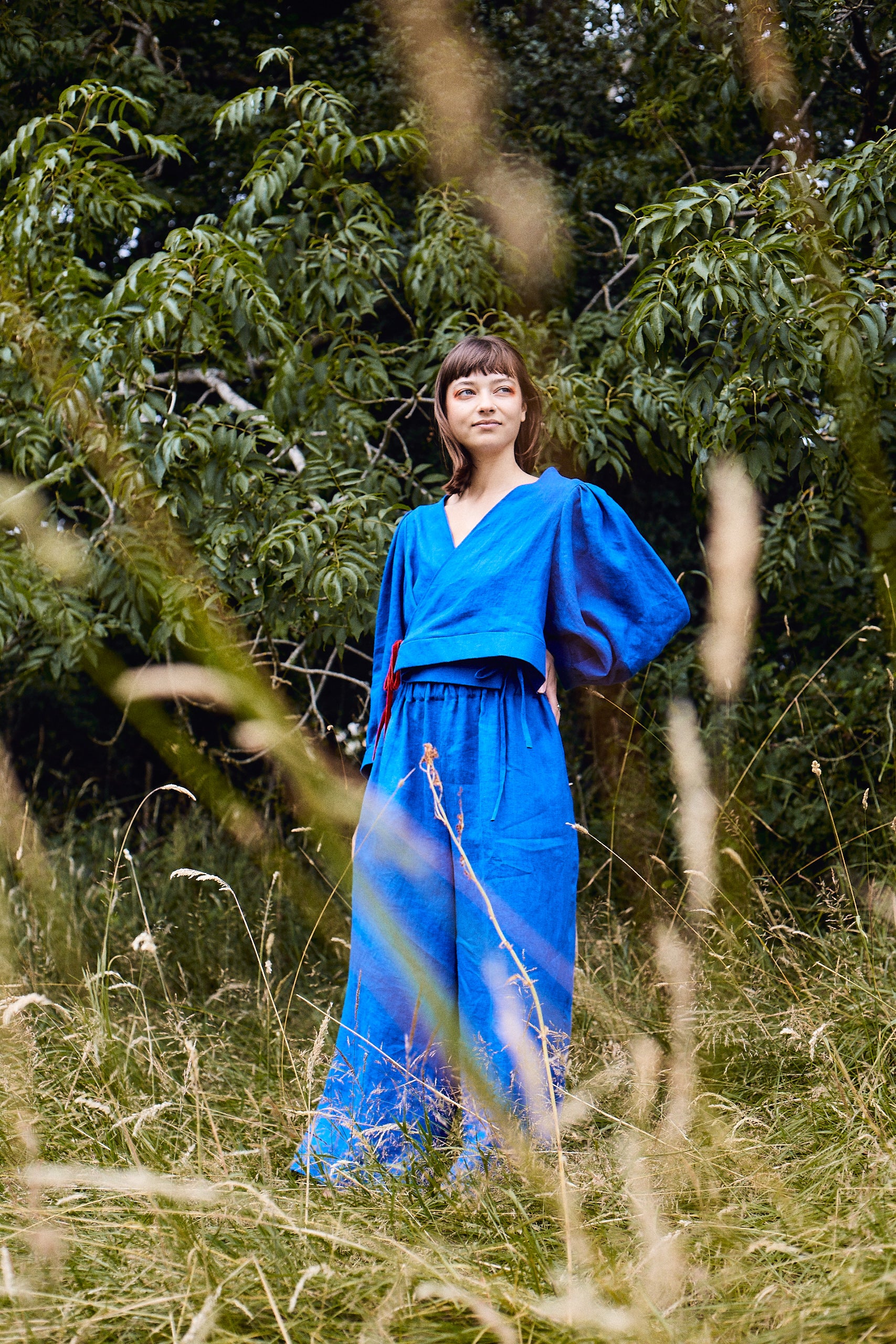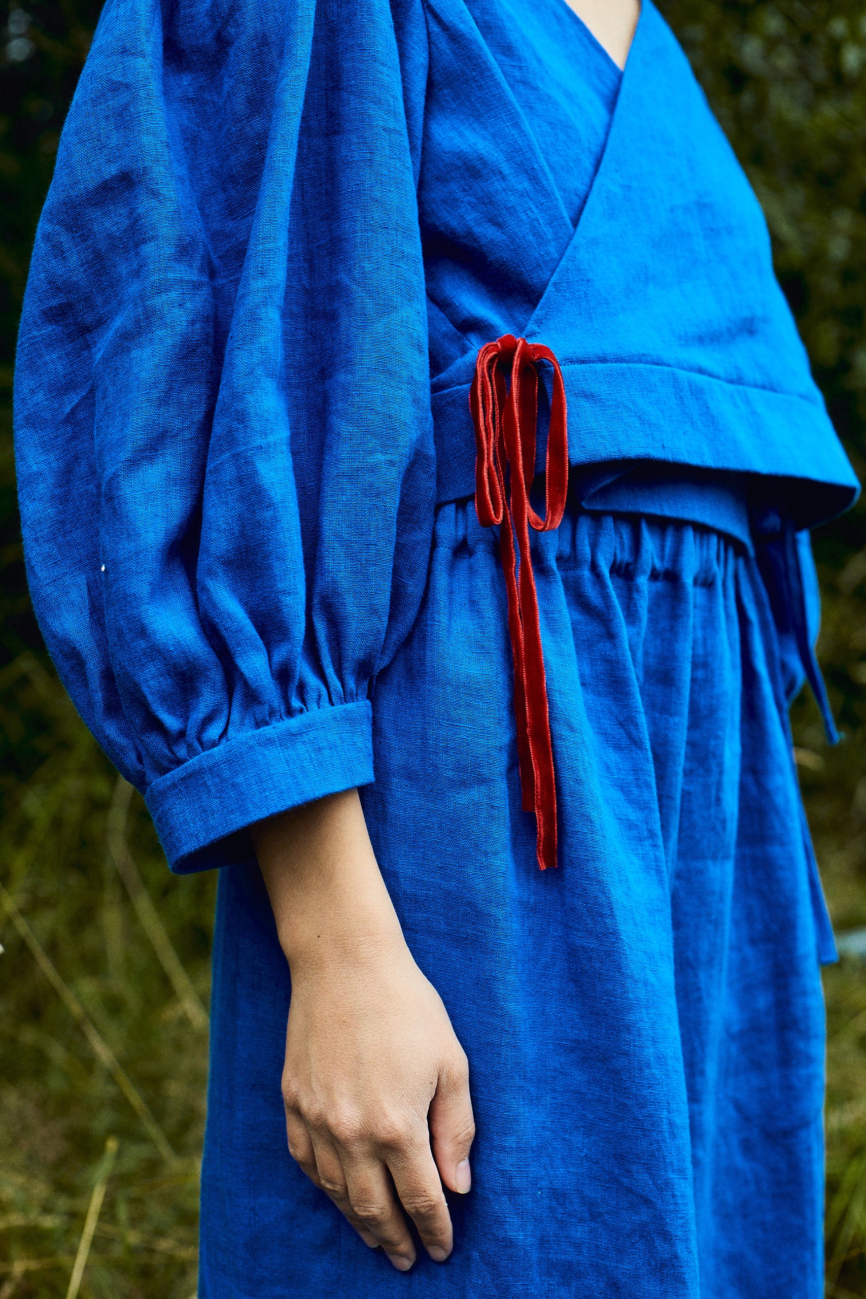 Made from a 185gsm European linen this standout yet staple colourway is one for the Tapuh archives. Rightly named Azul this piece is a homage to the great Frida Khalo and her home La Casa Azul. Soft, strong, sturdy and bouncy this regal Cloud 9 will make any outfit feel special. Our Azul colourway closes with a contrasting ruby red double velvet ribbon.