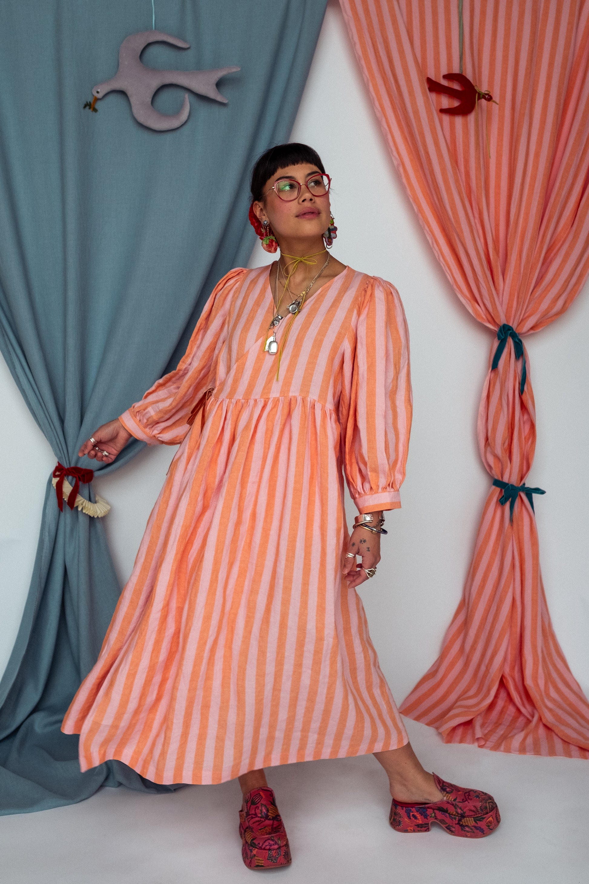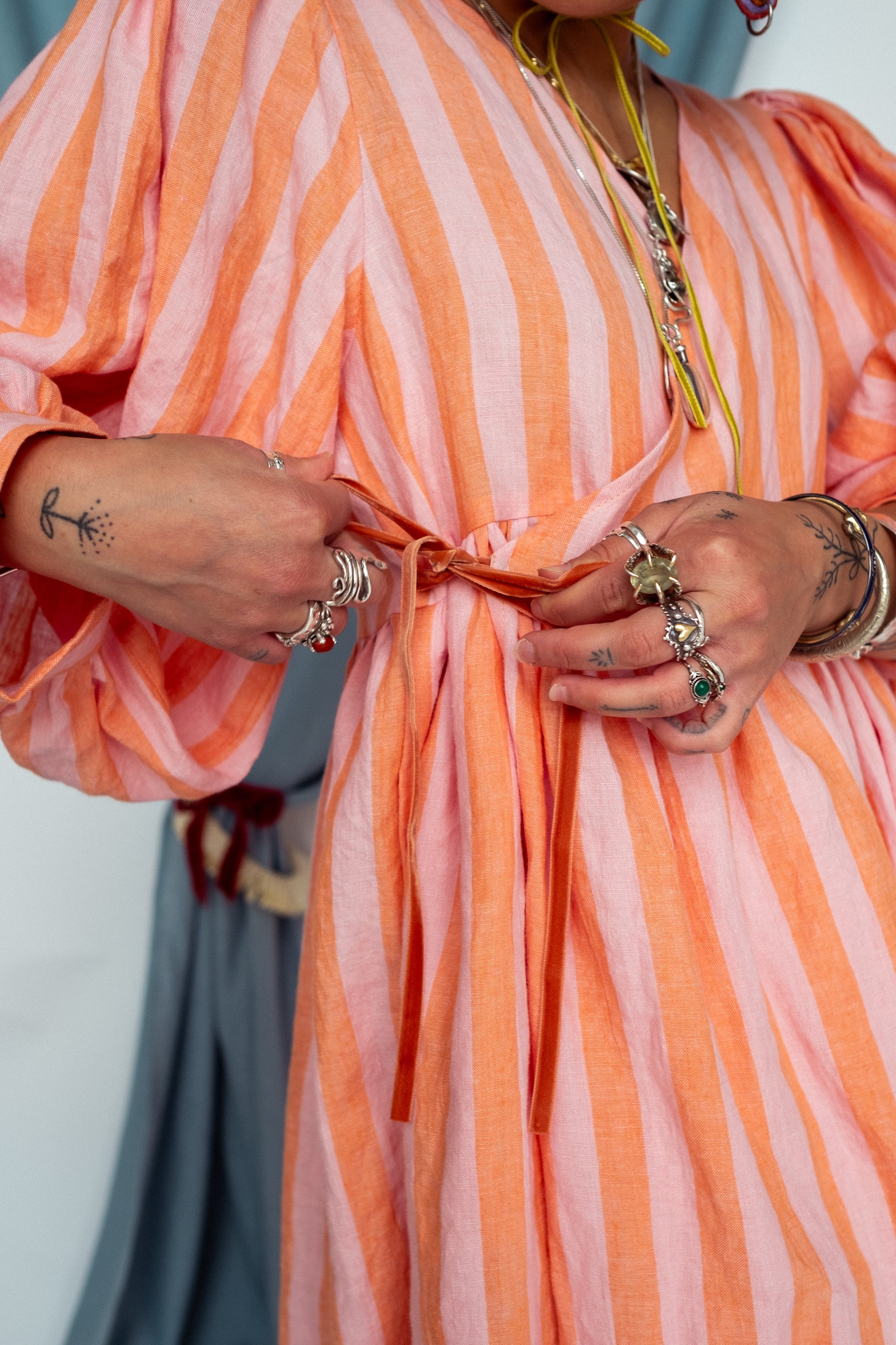 All of our Cloud 9 dresses have the same sleeve length and an adjustable fit due to being a wrap style. The cuff has been designed to be oversized and not tight fitting. Please note the Cloud 9 has been designed to have a boxy fit therefore does not have any darting or curvature to the body. Each dress has ties on the inside and outside which makes the dress an adjustable within each size.