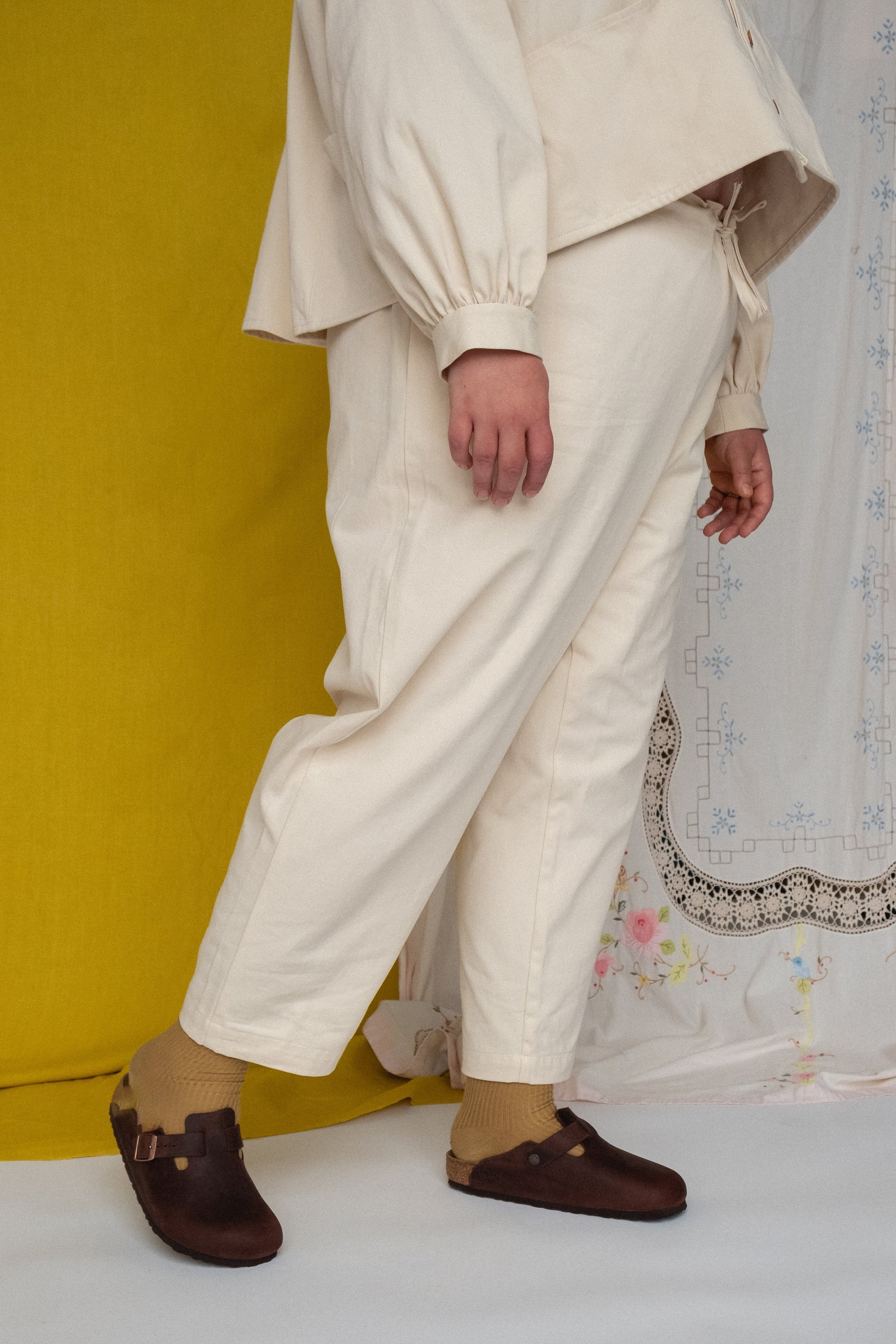 Here is your Tapuh everyday wardrobe essential! Whether you’re out running errands, working in the garden or busy in the studio our Roberta slacks are there to see you throughout the day into the night. A beautiful blend of comfort and style ready to be paired with anything and everything.