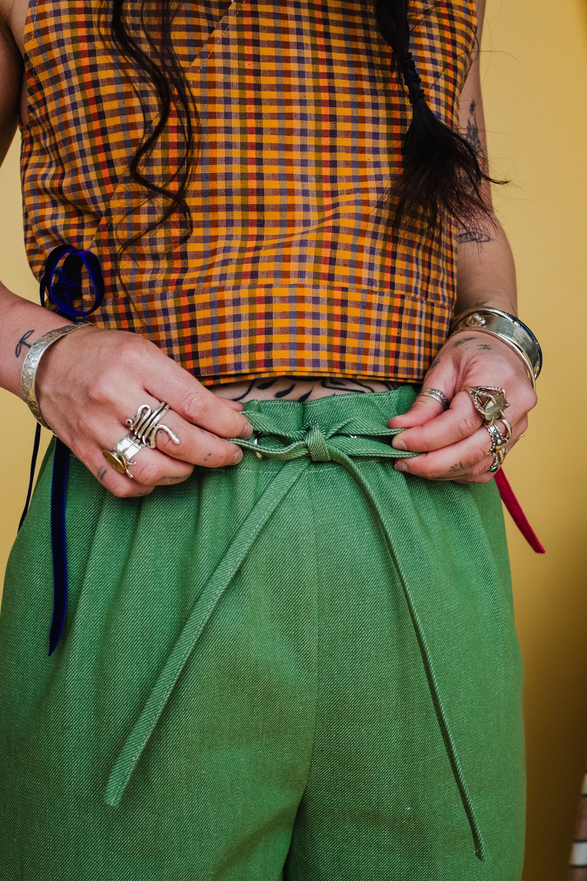 Here is your Tapuh everyday wardrobe essential! Whether you’re out running errands, working in the garden or busy in the studio our Roberta slacks are there to see you throughout the day into the night. A beautiful blend of comfort and style ready to be paired with anything and everything.