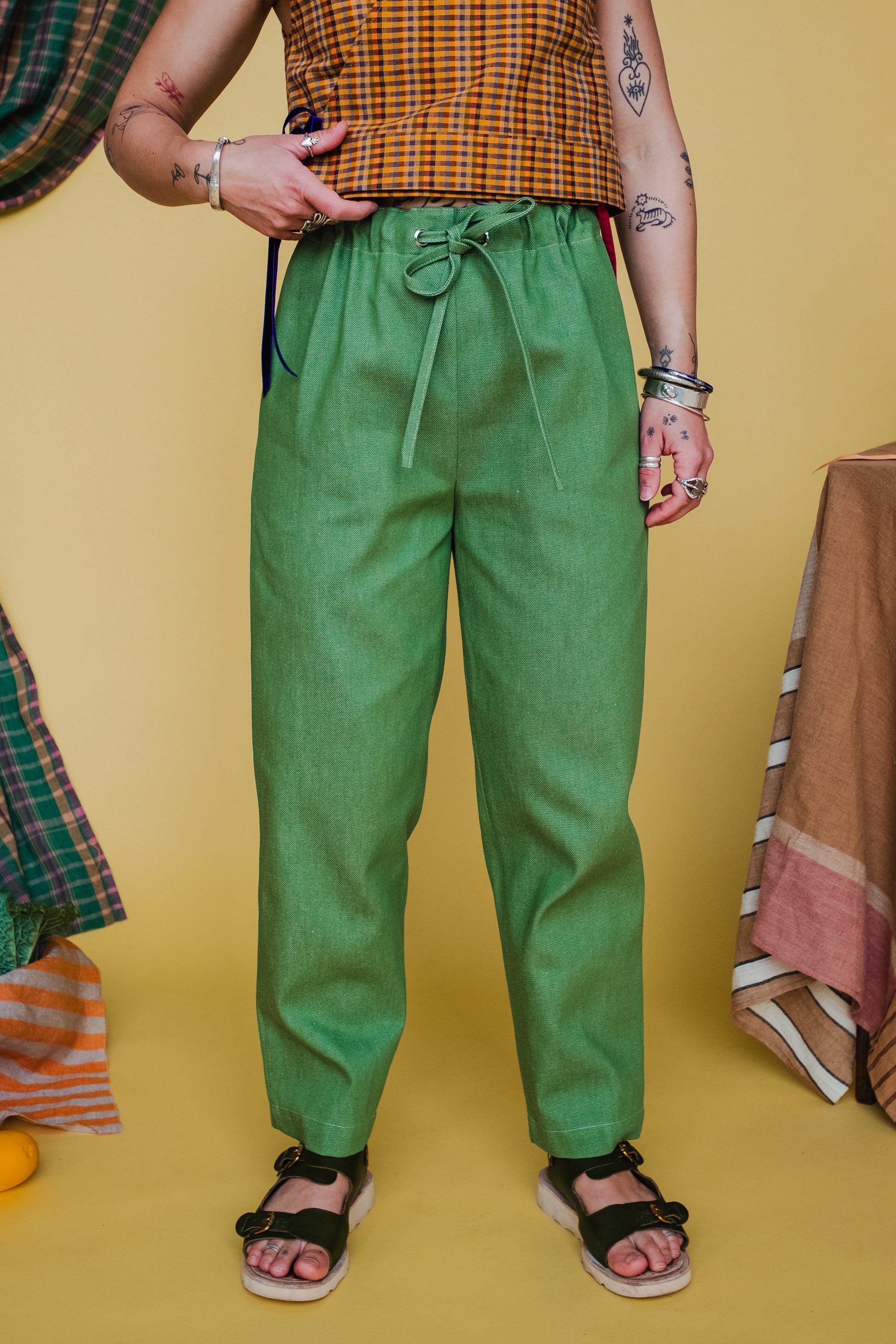 Our Roberta slacks have been designed with a tapered leg for ease of movement, half-elasticated and half-drawstring waistband for maximum comfortability and size flexibility, and of course two inseam pockets (always pockets).